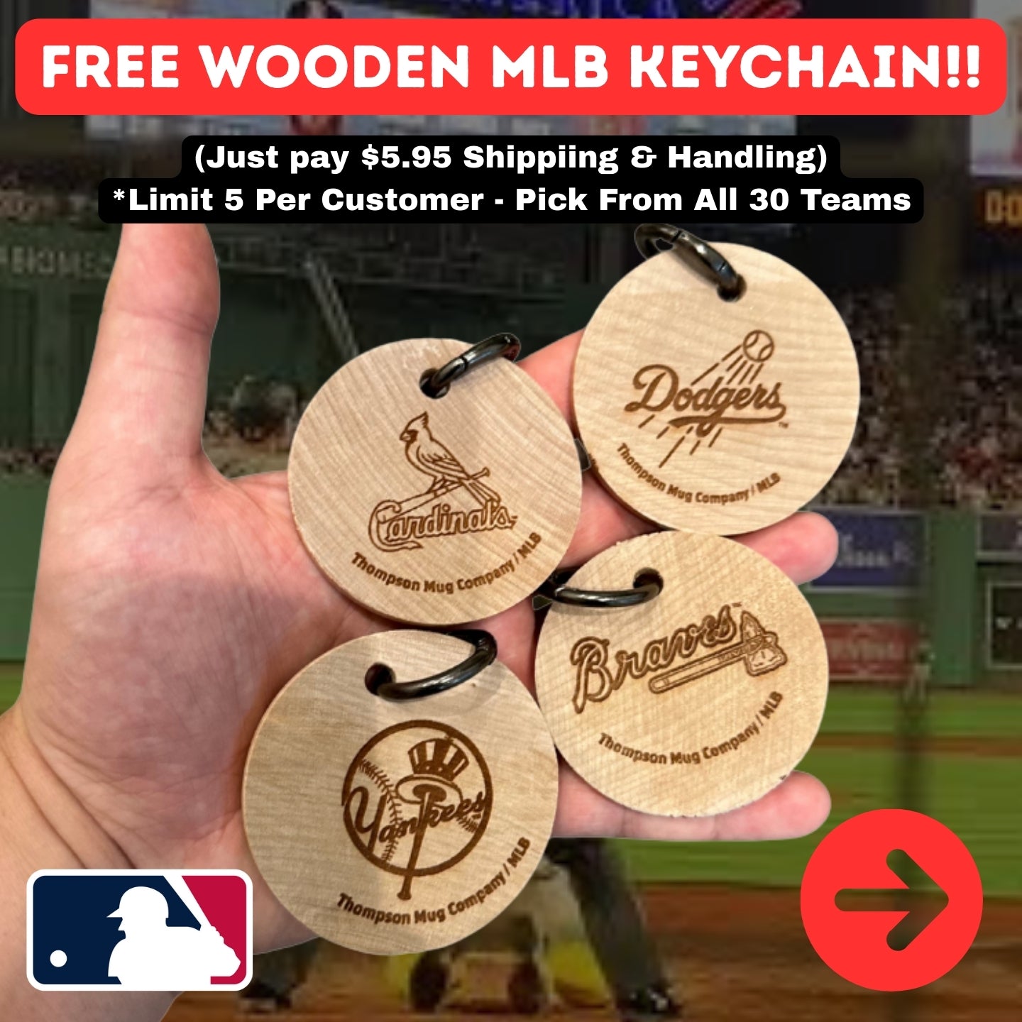 Grab an MLB keychain for only the price of shipping. Price on this page is the cost of Shipping + Handling.