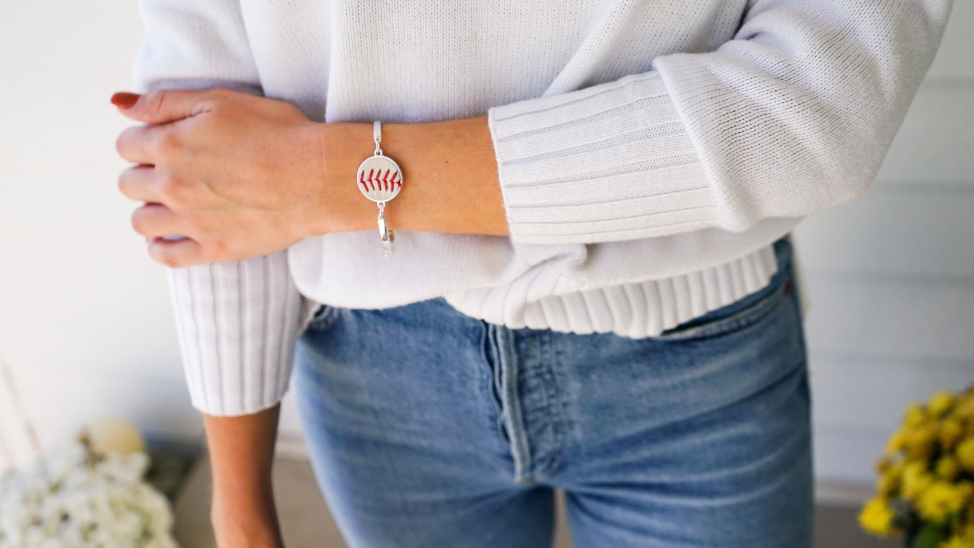 Silver Baseball Seam Bracelet